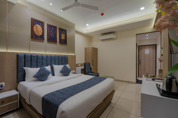 At Hotel Bhilad Gate, we have designed our rooms and interiors keeping in mind the Industrial , Corporate and Solow Guest as well as . Hence our rooms are aesthetically designed and showcase a touch of Modern Architecture. We have created rooms that speak for themselves and eye catching interior to make your experience unique and memorable.